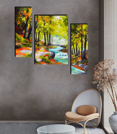 Set Of 3 Scenery 3d Framed Wall Paintings for Living Room Big Size, Bedroom, Home Decoration, Decor, Office (45X30 CM)