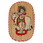 Oval Shaped Design Bamboo Hand Crafted Wall Hangings Of Bal Gopal With Holy Cow For Home D?cor | Bamboo Art For Wall Decor
