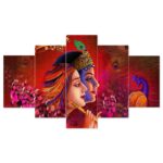 Radhe Krishna Set of Five 3D Framed Paintings for Wall Decoration – Ideal for Home, Living Room, and Bedroom (125 x 60 CM)