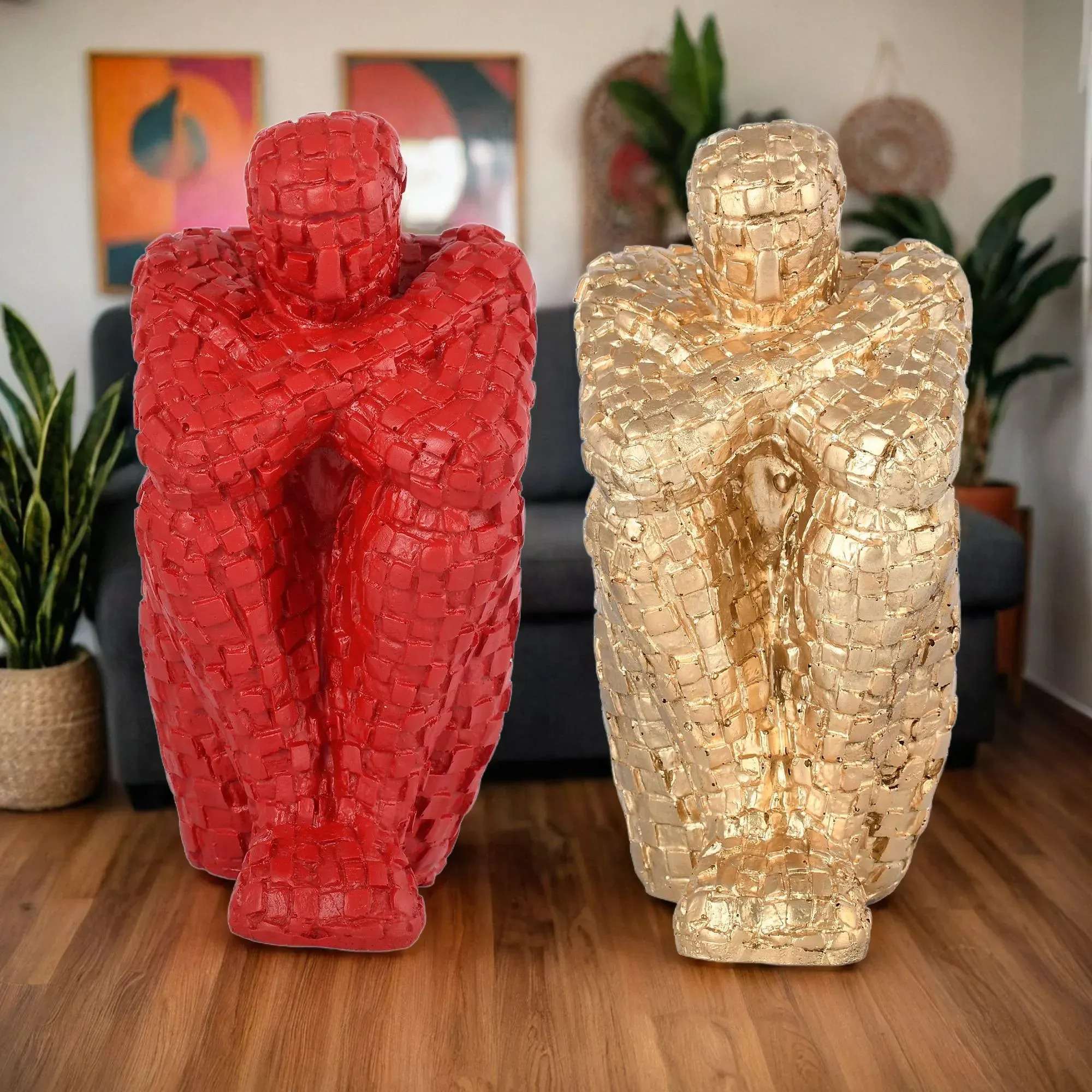 Handcrafted Thinking Mens in Sitting Position for Home Decor/Gifting/Living Room Decorative Showpiece – 20 cm (Polyresin, Red, Gold)